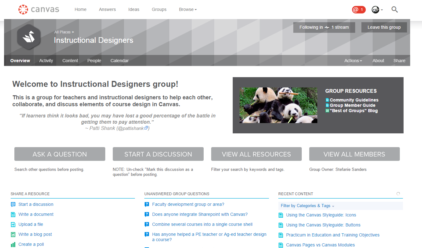 I’ve recently joined the Canvas Community as a way to get ideas and information about a system that is new here at Virginia Tech. We recently adopted Canvas as the LMS of choice (the announcement), and now it’s up to the Instructional Designers and the IT people in the colleges to figure out how to make it work for our faculty and staff. So it was great to see all of this information in one place:
